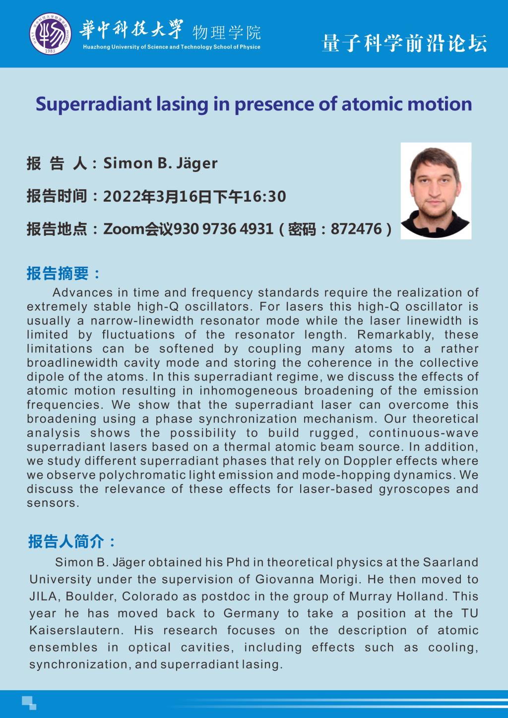 量子科学前沿论坛(20220316)Superradiant lasing in presence of atomic motion