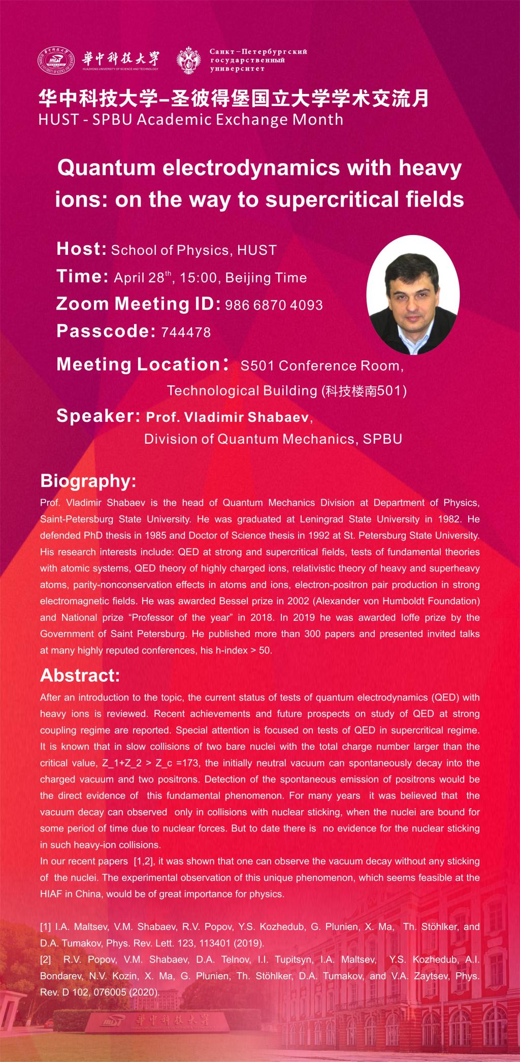 SPBU学术交流月(20220428)Quantum elecrodynamics with heavy ions: on the way to supercritical fields