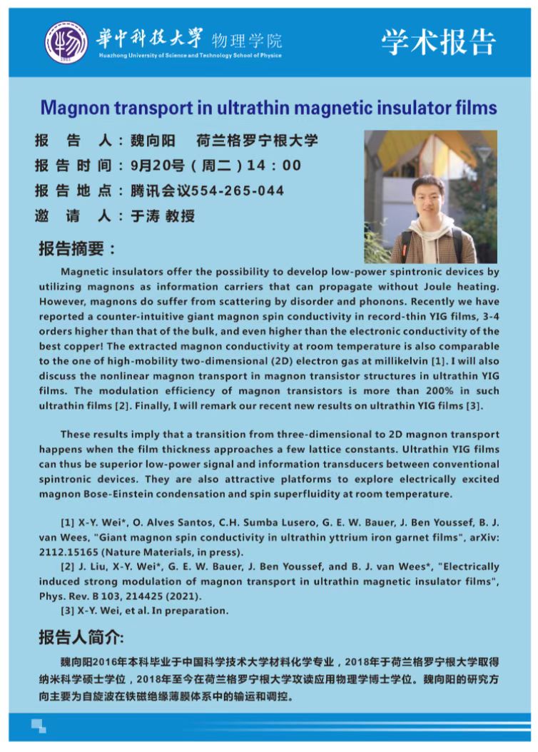 学术报告(20220920)Magnon transport in ultrathin magnetic insulator films