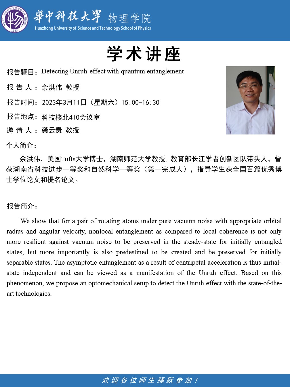 学术报告(20230311)Detecting Unruh effect with quantum entanglement