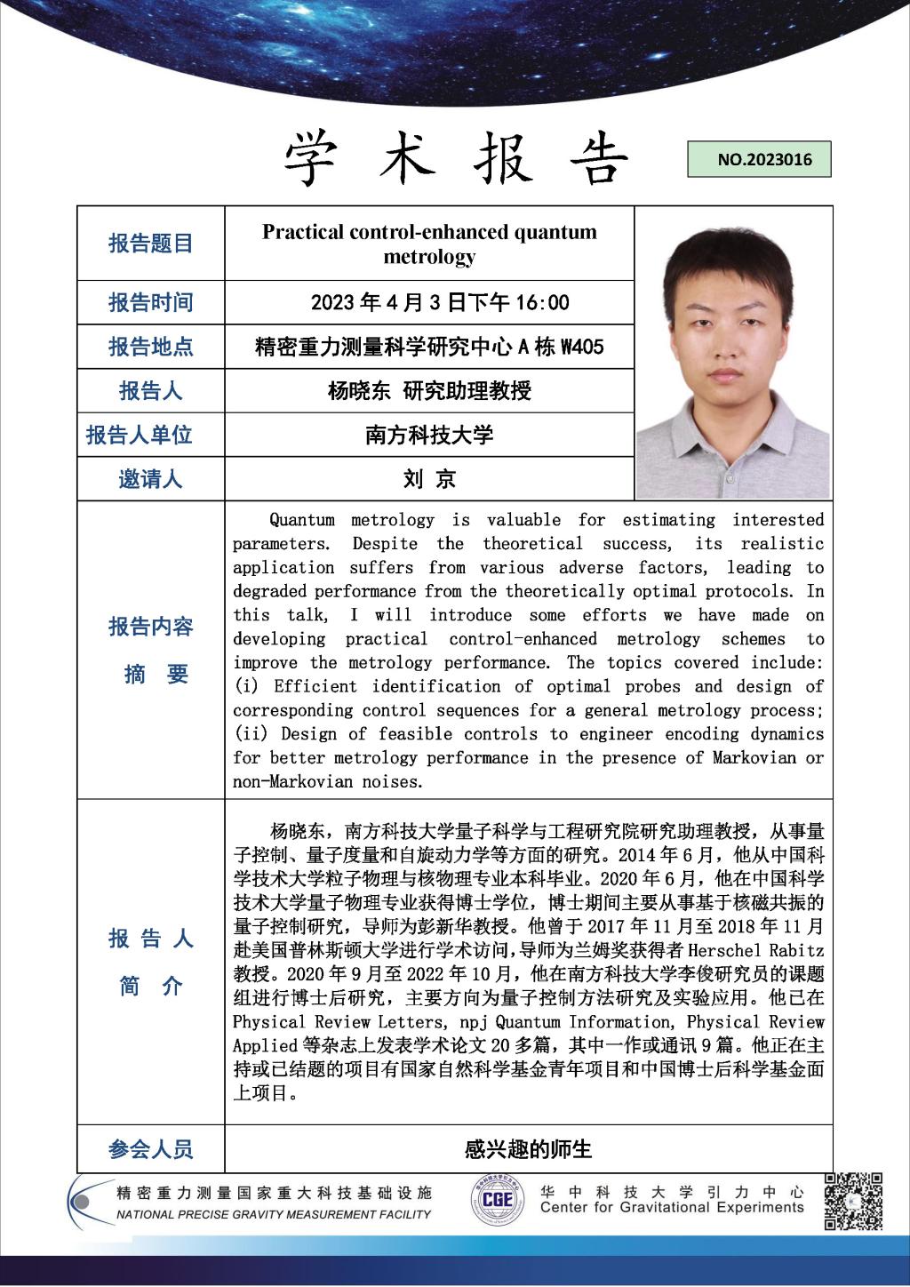 学术报告(20230403)Practical control-enhanced quantum metrology
