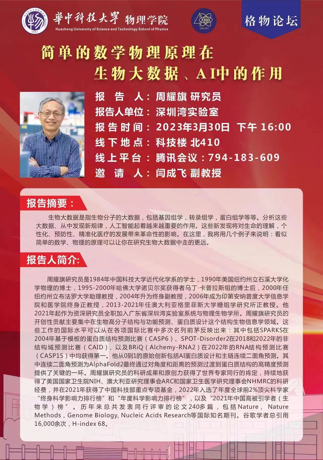 格物论坛(20230330)简单的数学物理原理在生物大数据、AI中的作用