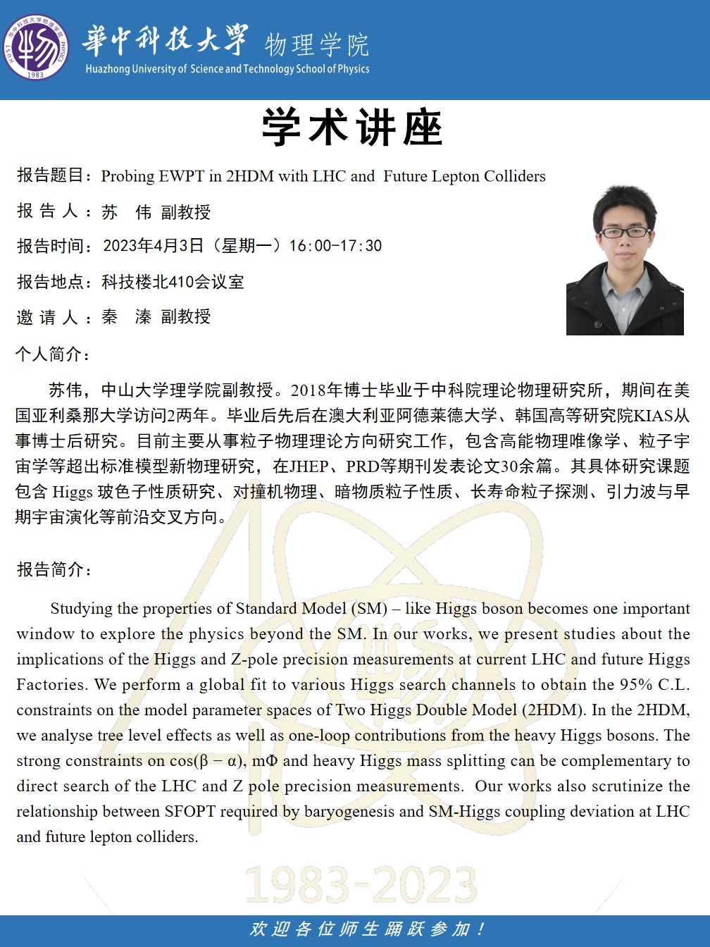 学术报告(20230403)Probing EWPT in 2HDM with LHC and Future Lepton Colliders