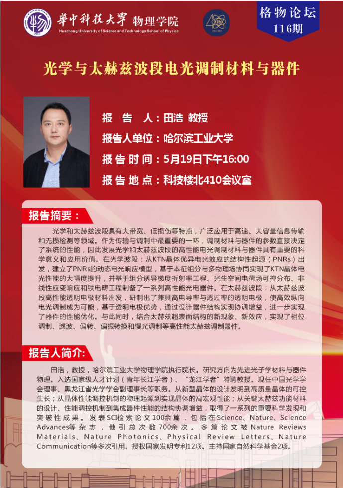 格物论坛116期(20230519)光学与太赫兹波段电光调制材料与器件