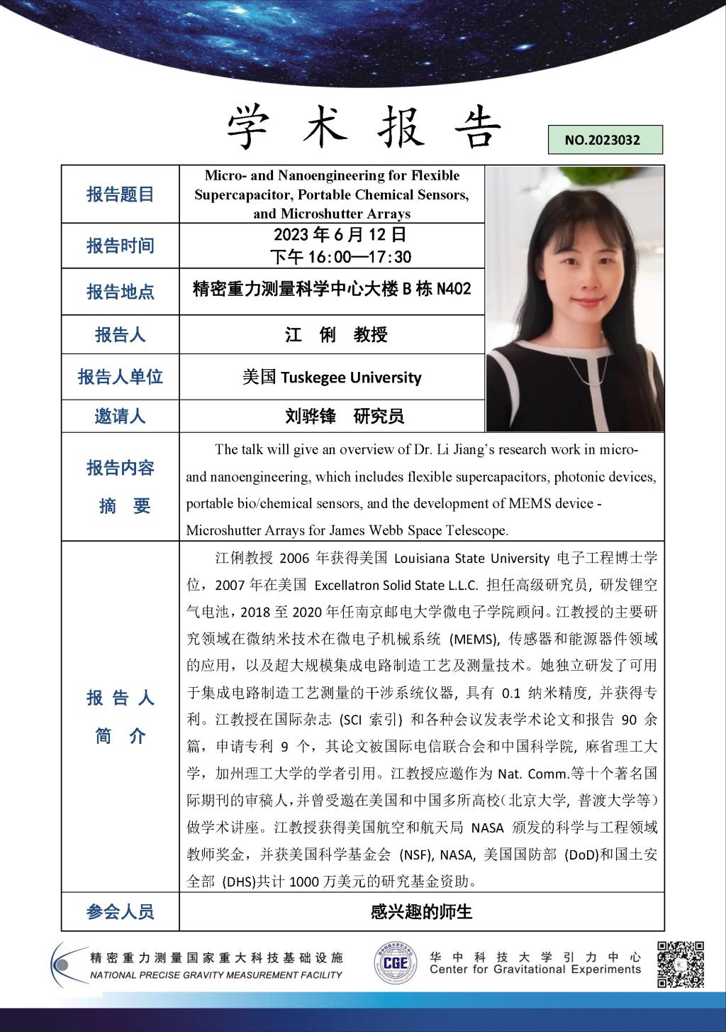 学术报告(20230612)Micro- and Nanoengineering for Flexible Supercapacitor, Portable Chmicals Sensors, and Microshutter Arrays
