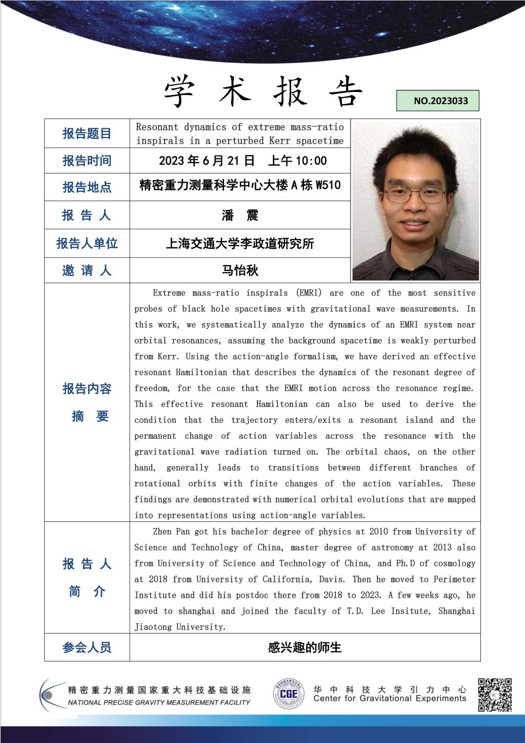 学术报告(20230621)Resonant dynamics of extreme mass-ratio inspirals in a perturbed Kerr spacetime