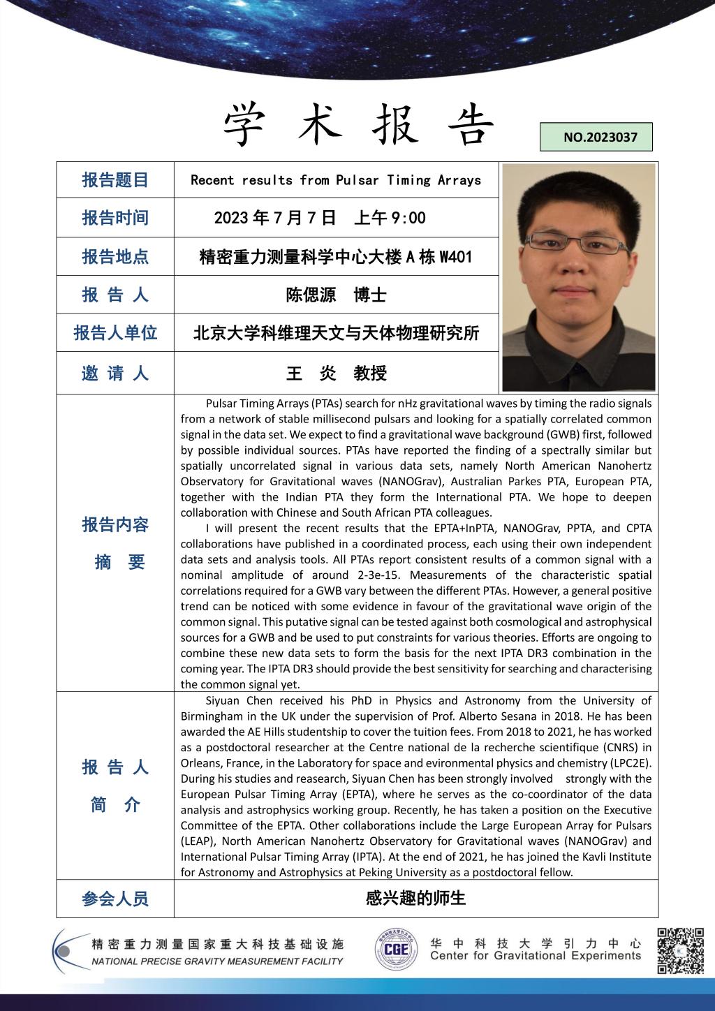 学术报告(20230707)Recent results from Pulsar Timing Arrays