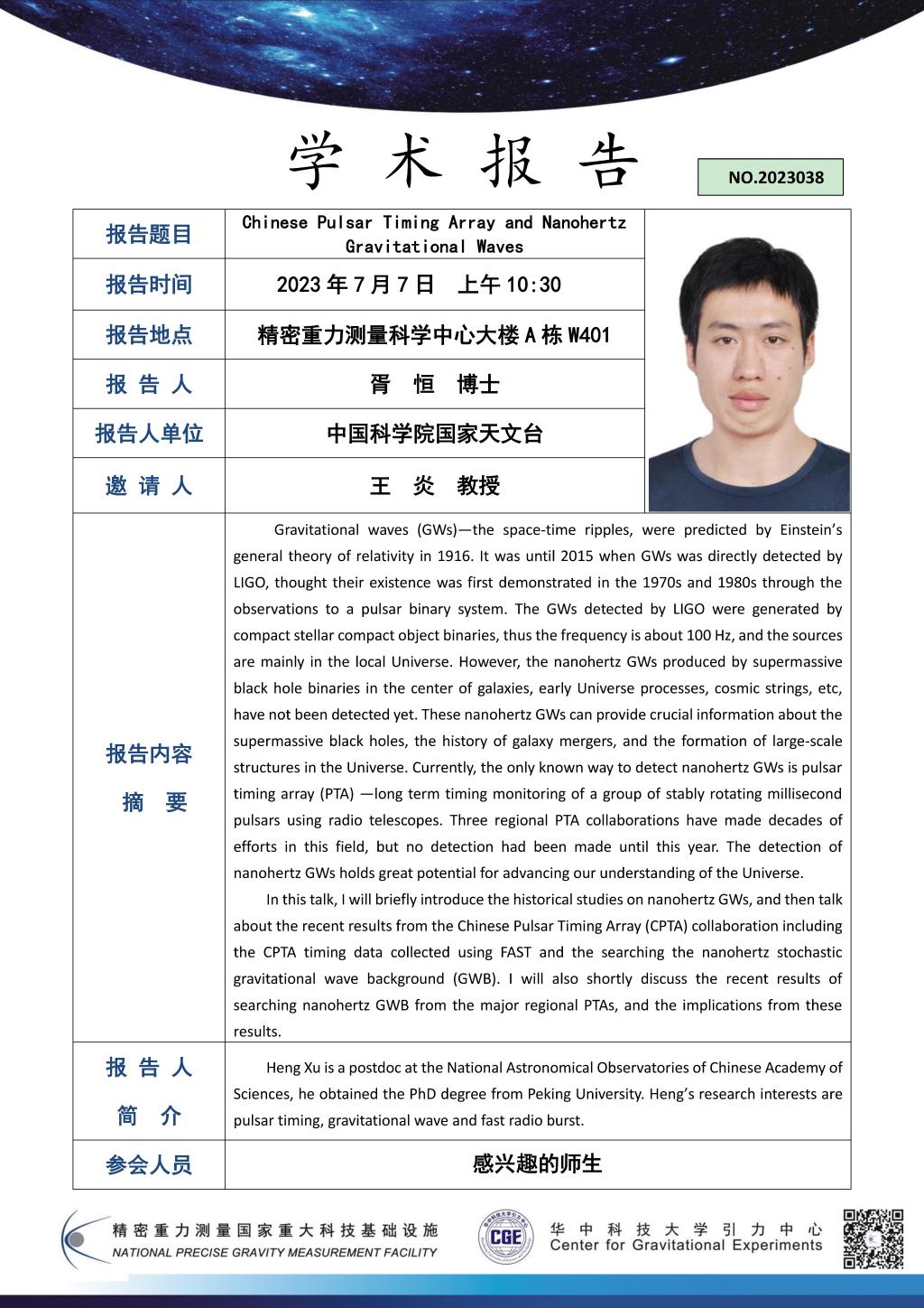 学术报告(20230707)Chinese Pulsar Timing Array and Nanohertz Gravitational Waves