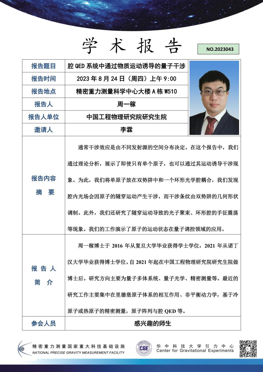 学术报告(20230824)腔QED系统中通过物质运动诱导的量子干涉