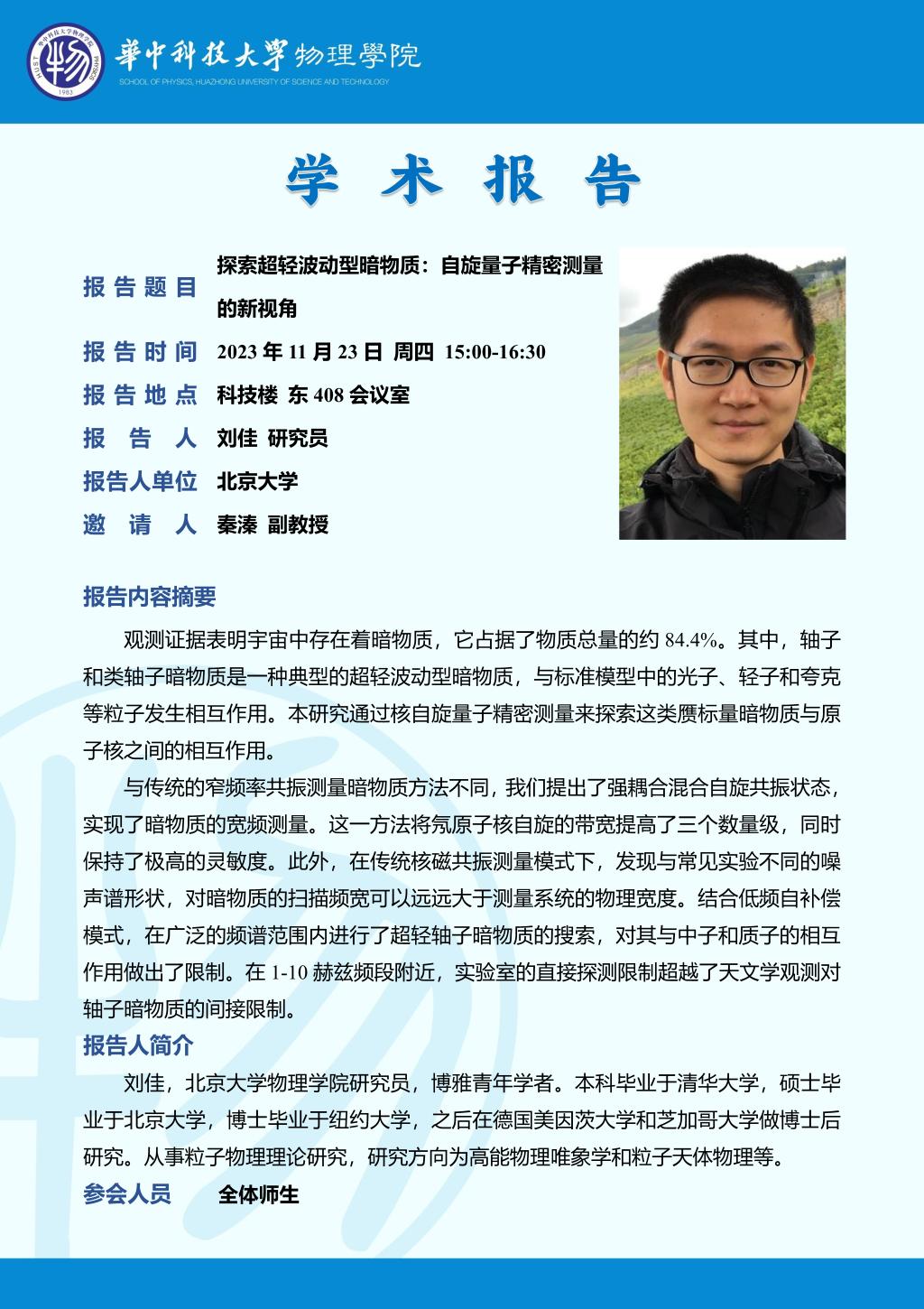 学术报告(20231123)探索超轻波动型暗物质: 自旋量子精密测量的新视角