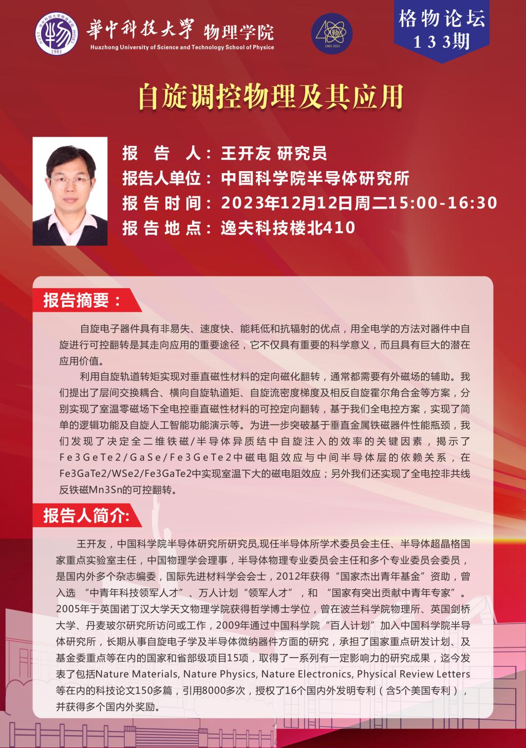 格物论坛133期(20231212)自旋调控物理及其应用