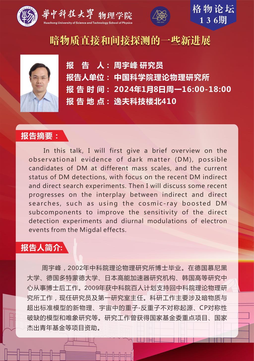 格物论坛136期(20240108)暗物质直接和间接探测的一些新进展