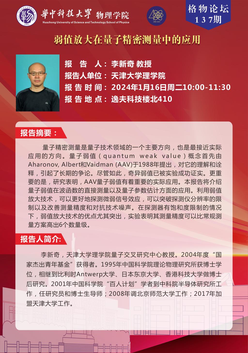 格物论坛137期(20240116)弱值放大在量子精密测量中的应用
