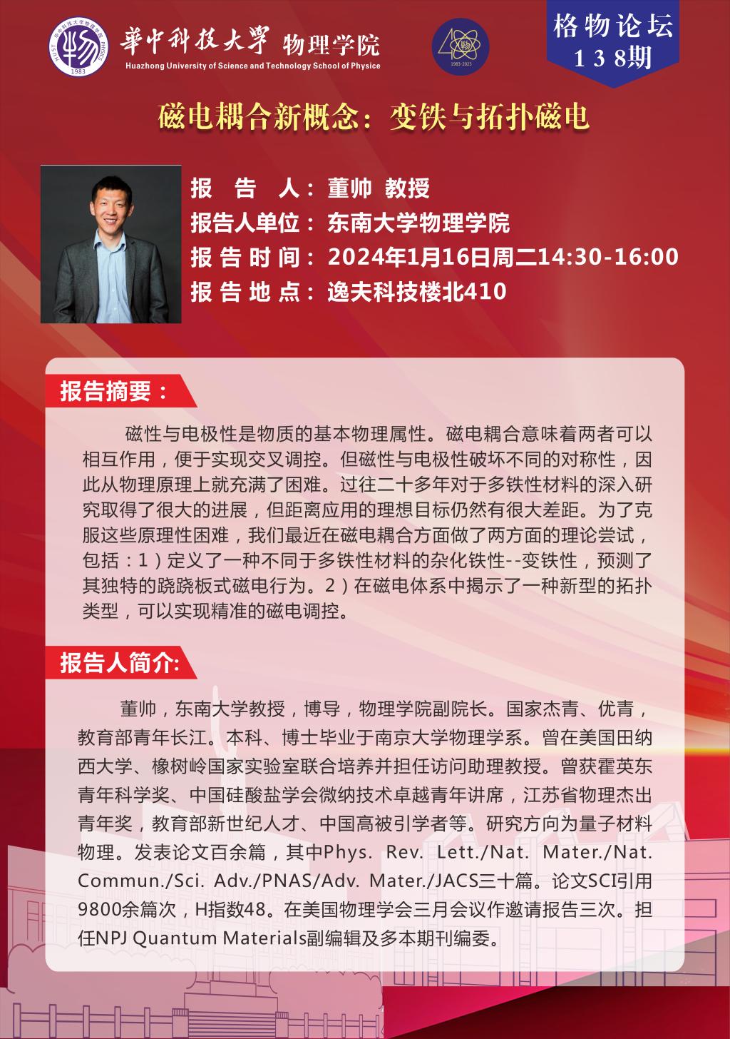 格物论坛138期(20240116)磁电耦合新概念:变铁与拓扑磁电