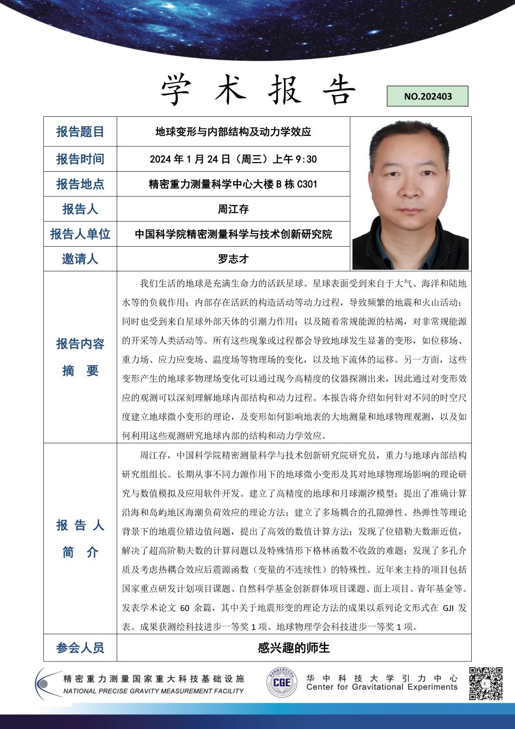 学术报告(20240124)地球变形与内部结构及动力学效应
