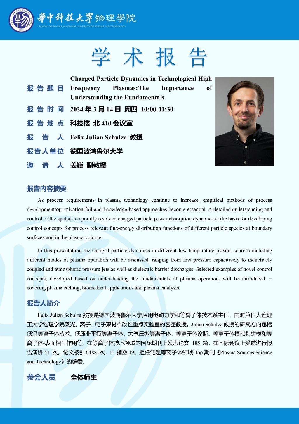 学术报告(20240314)Charged Particle Dynamics in Technological High Frequency Plasmas: The importance of Understanding the Fundamentals