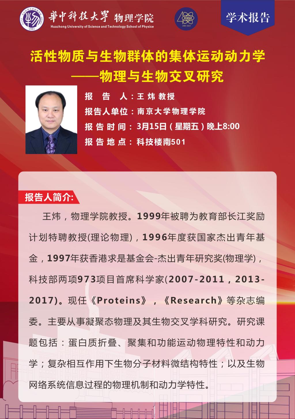 学术报告(20240315)活性物质与生物群体的集体运动动力学——物理与生物交叉研究