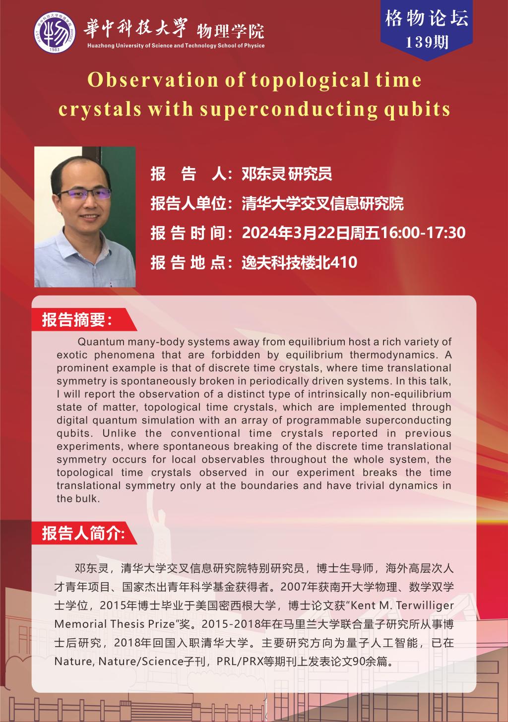 格物论坛139期(20240322)Observation of topological time crystals with superconducting qubits