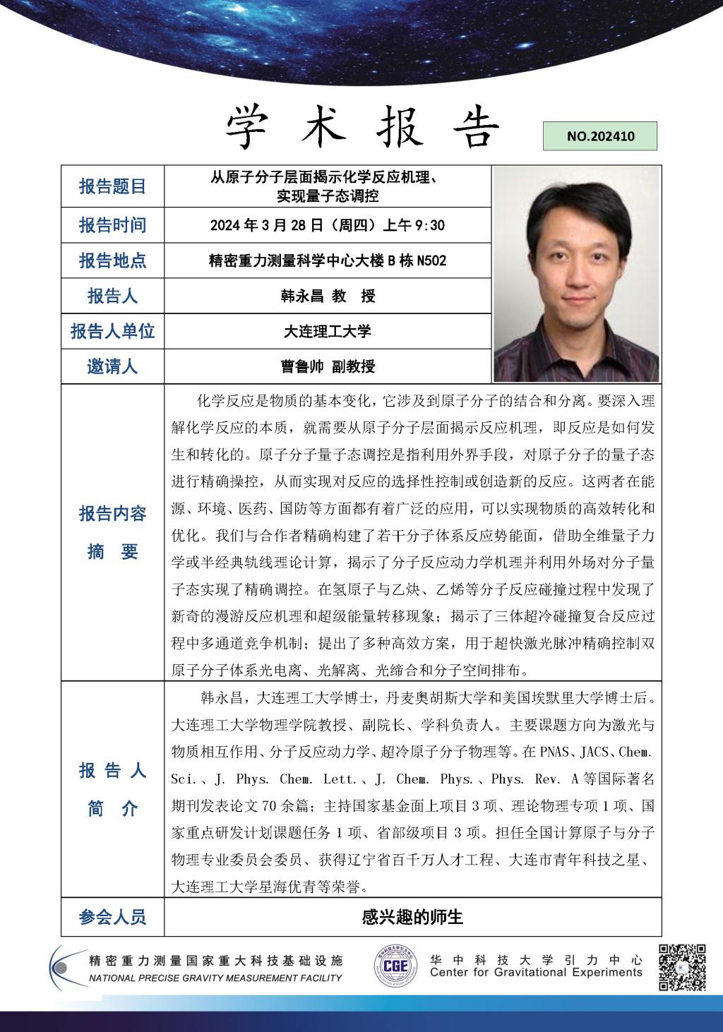 学术报告(20240328)从原子分子层面揭示化学反应机理、实现量子态调控