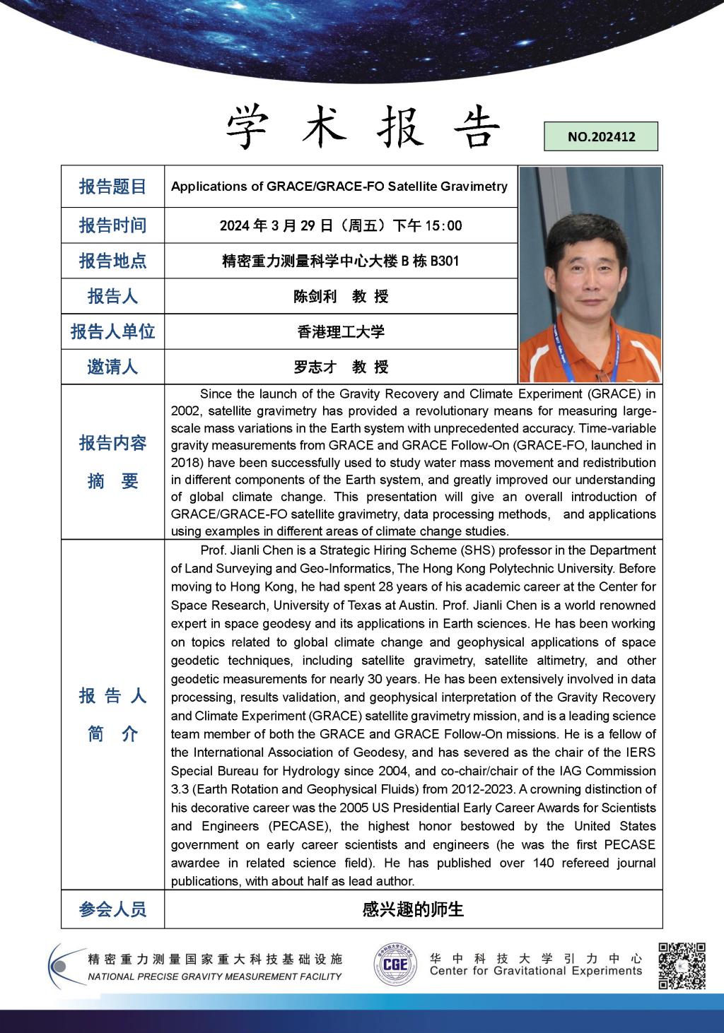 学术报告(20240329)Applications of GRACE/GRACE-FO Satellite Gravimetry