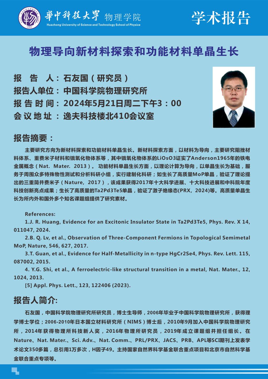 学术报告(20240521)物理导向新材料探索和功能材料单晶生长