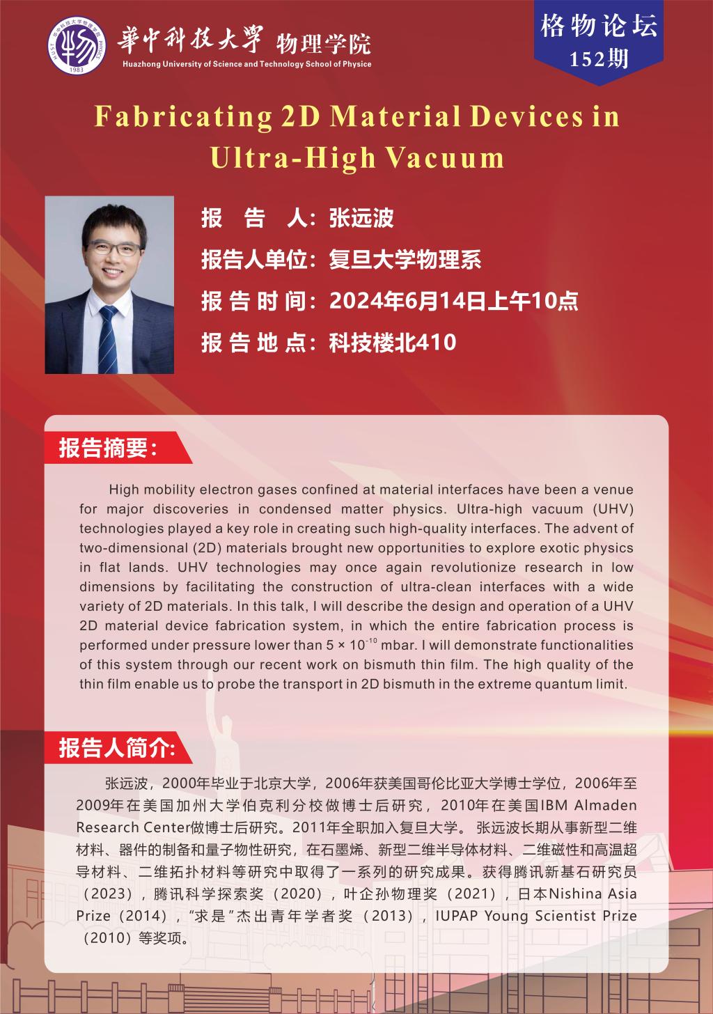 格物论坛152期(20240614)Fabricating 2D Material Devices in Ultra-High Vacuum