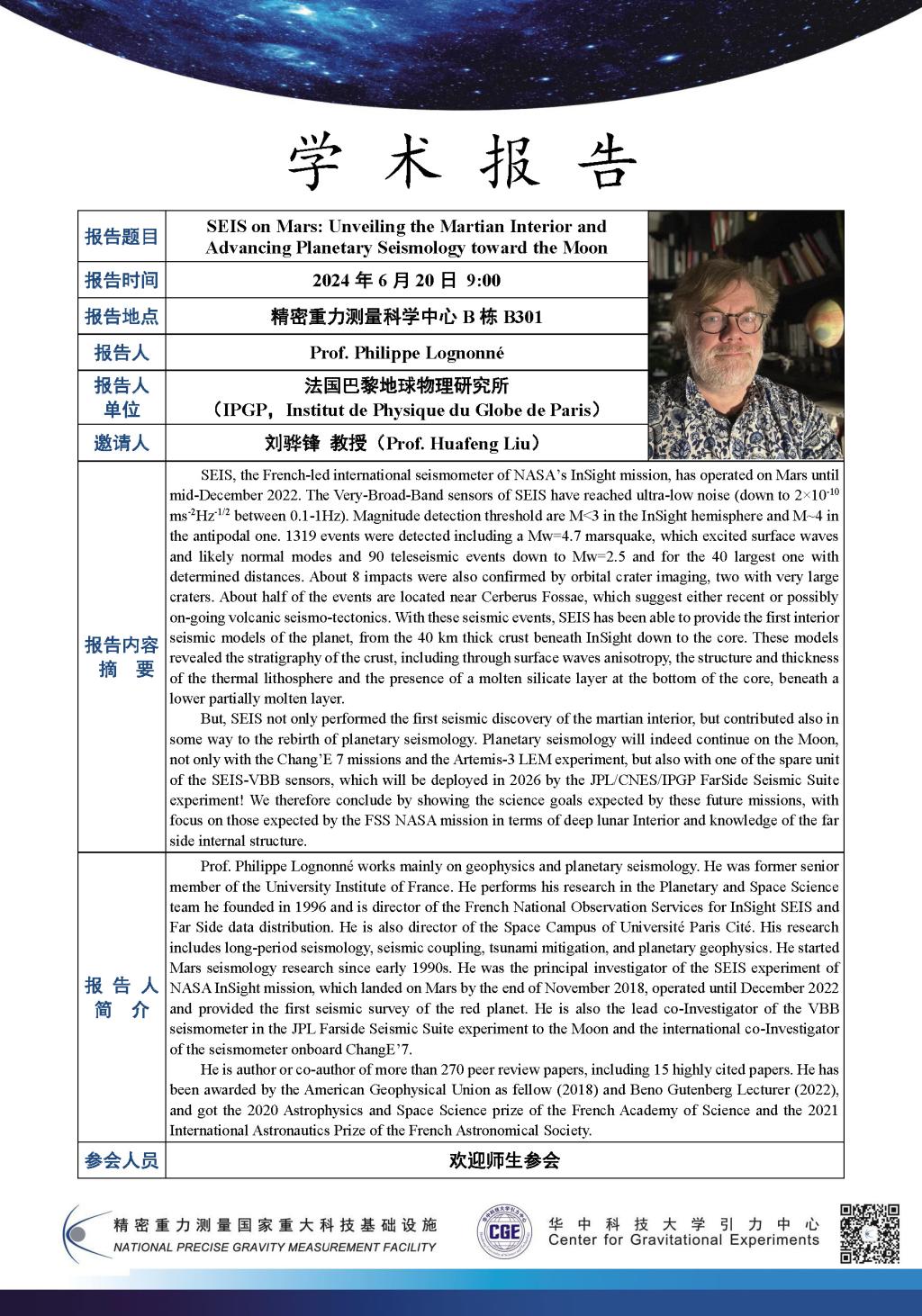 学术报告(20240620)SEIS on Mars: Unveiling the Martian Interior and Advancing Planetary Seismology toward the Moon