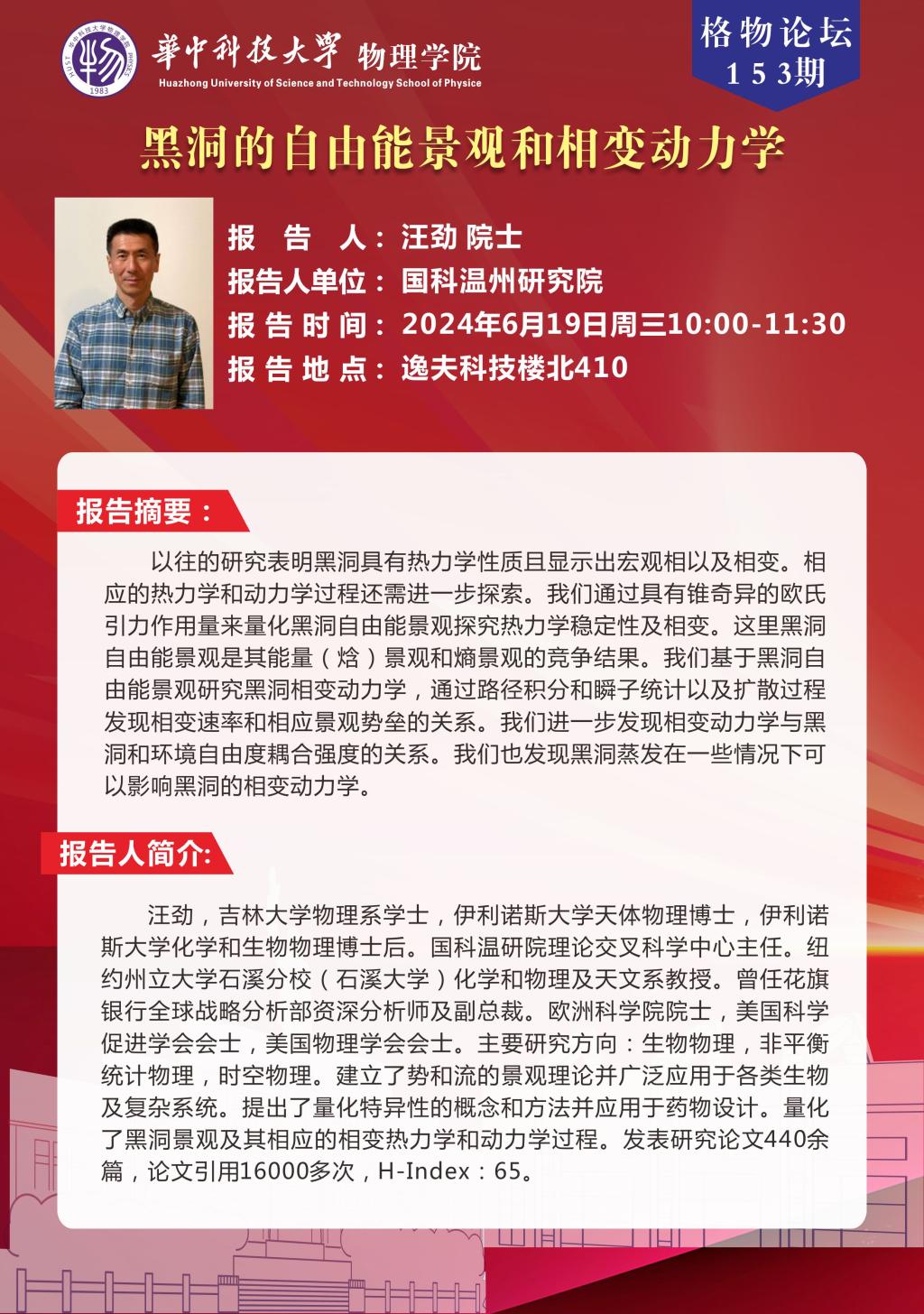 格物论坛153期(20240619)黑洞的自由能景观和相变动力学