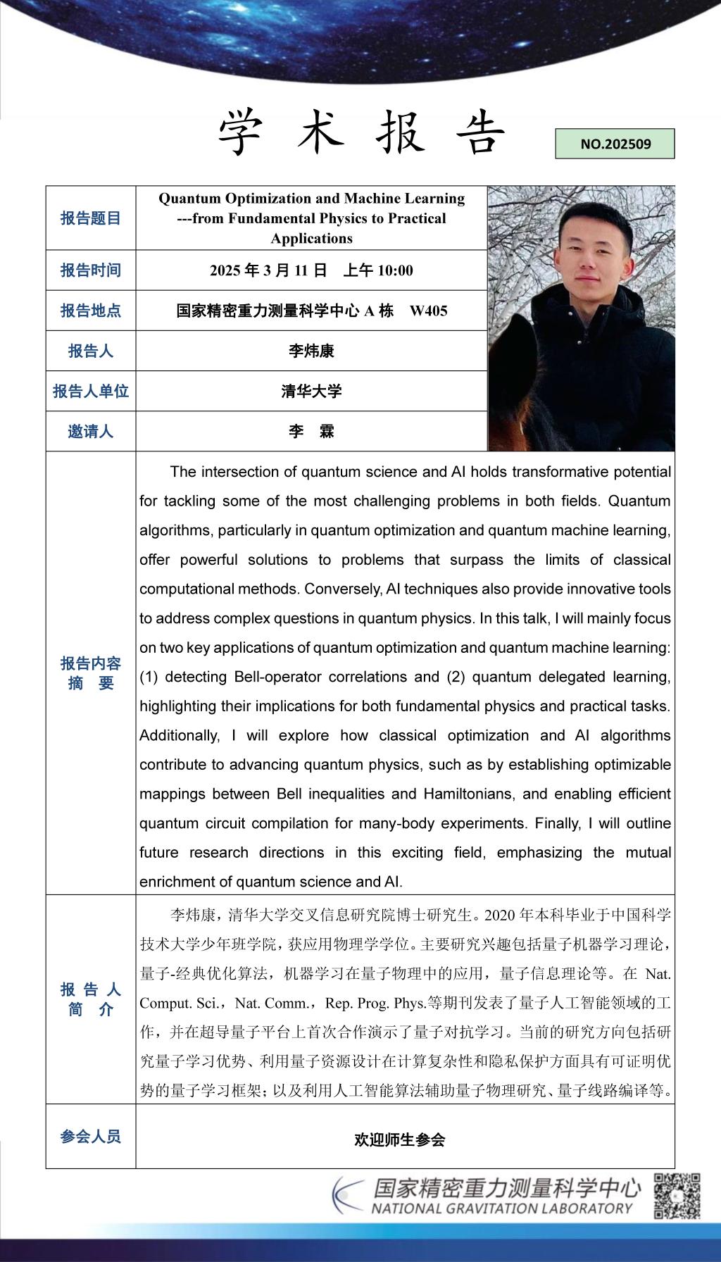 学术报告(20250311)Quantum Optimization and Machine Learning---from Fundamental Physics to Practical Applications