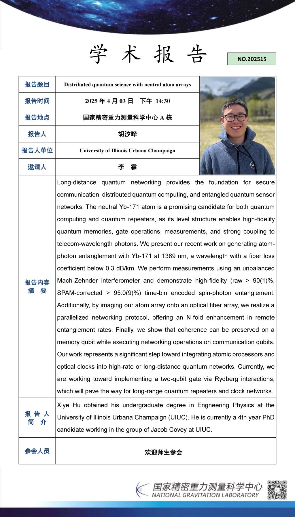 学术报告(20250403)Distributed quantum science with neutral atom arrays