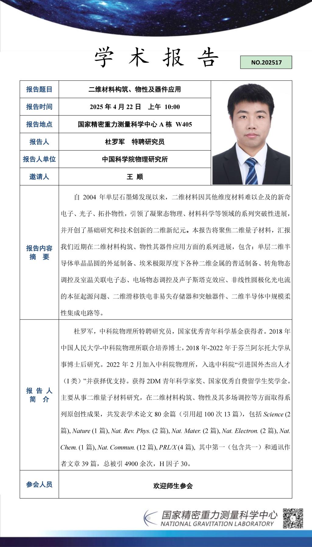 学术报告(20250422)二维材料构筑、物性及器件应用