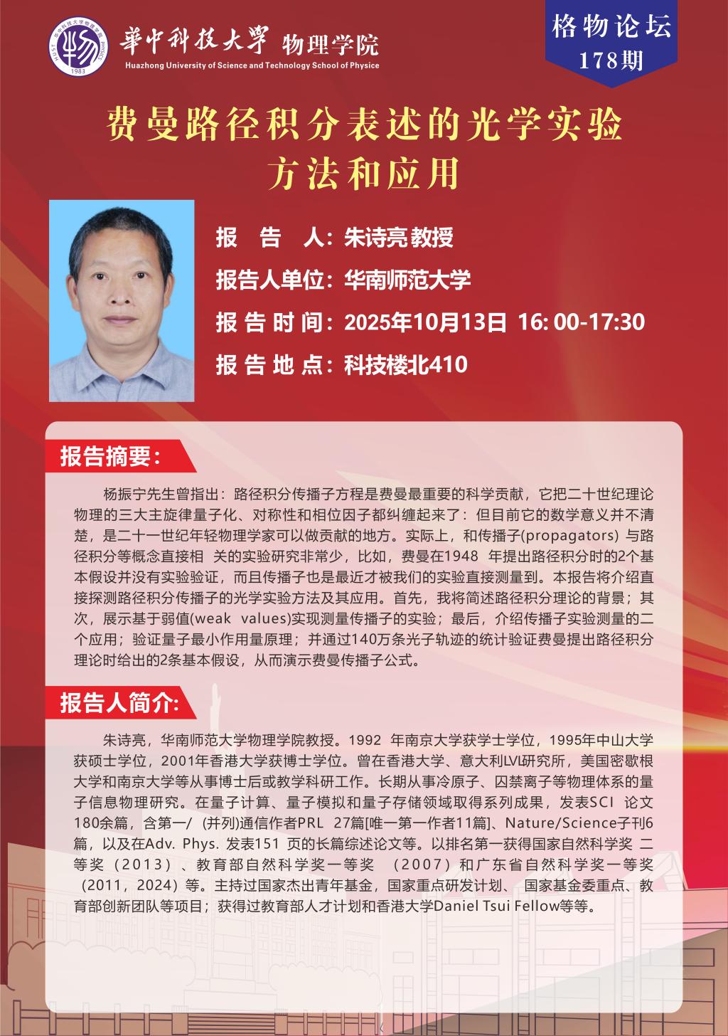 格物论坛178期(20251013)费曼路径积分表述的光学实验:方法和应用