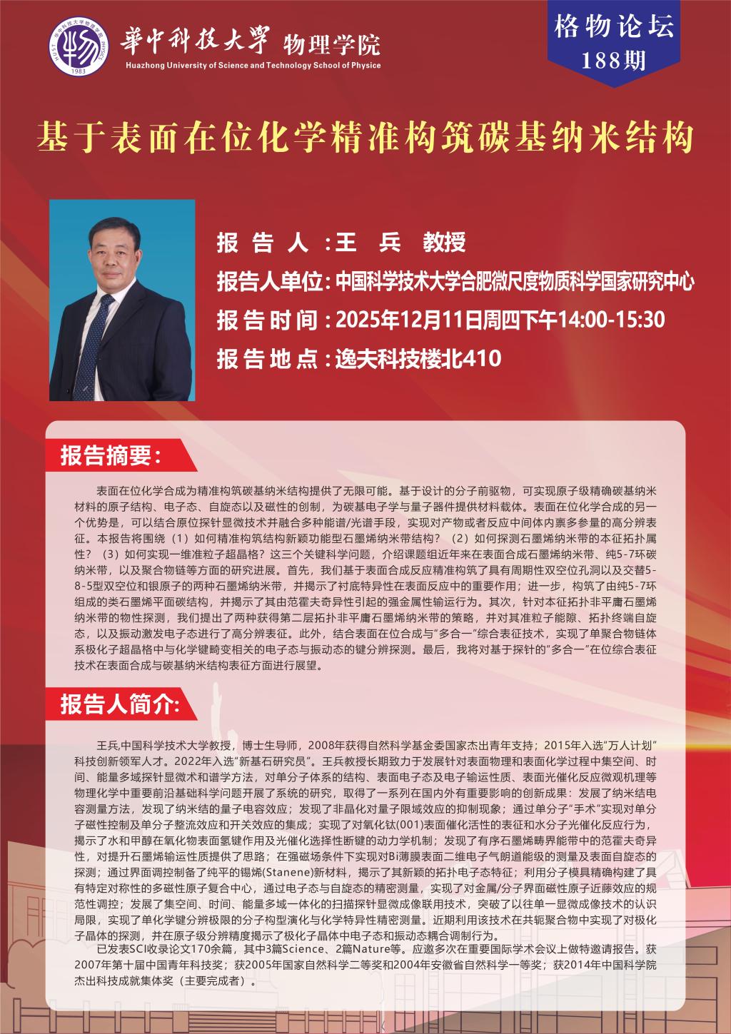 格物论坛188期(20251211)基于表面在位化学精准构筑碳基纳米结构