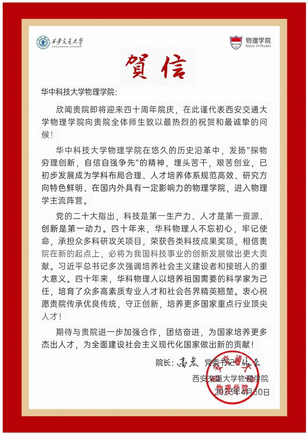 【兄弟院校贺信】西安交通大学304永利集团