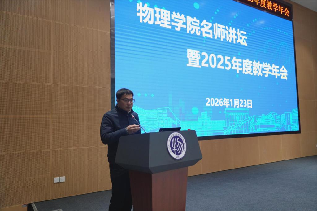 2026年1月23日上午,304永利集团“名师讲坛暨2025年度教学年会”在精密重力测量科学中心A栋W401报告厅隆重举行。本次会议特邀国家教学名师、上海交通大学物理与天文公司胡其图教授作专题报告。胡其图教授现任教育部高等公司大学物理课程教学指导委员会副主任委员,并连续五届担任教育部高等公司教学指导委员会委员,在物理基础课程教学与课程建设方面成就卓著。他主持建设的多门课程获评国家级一流本科课程,曾获国家级教学成果奖5项、国家级优秀教材奖3项及全国优秀教师等多项重要荣誉。