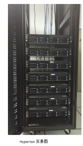 高性能科学计算集群Hyperion搭建于2015年,主要用于粒子与天体物理学中的数值模拟及科学计算。集群由浪潮天梭10000 NF5270M3机架式服务器架构组成,拥有1个管理节点,1个储存节点和5个计算节点。集群采用Xeon E5-2692 v2 CPU,计算节点总计120核,单节点内存达64GB。